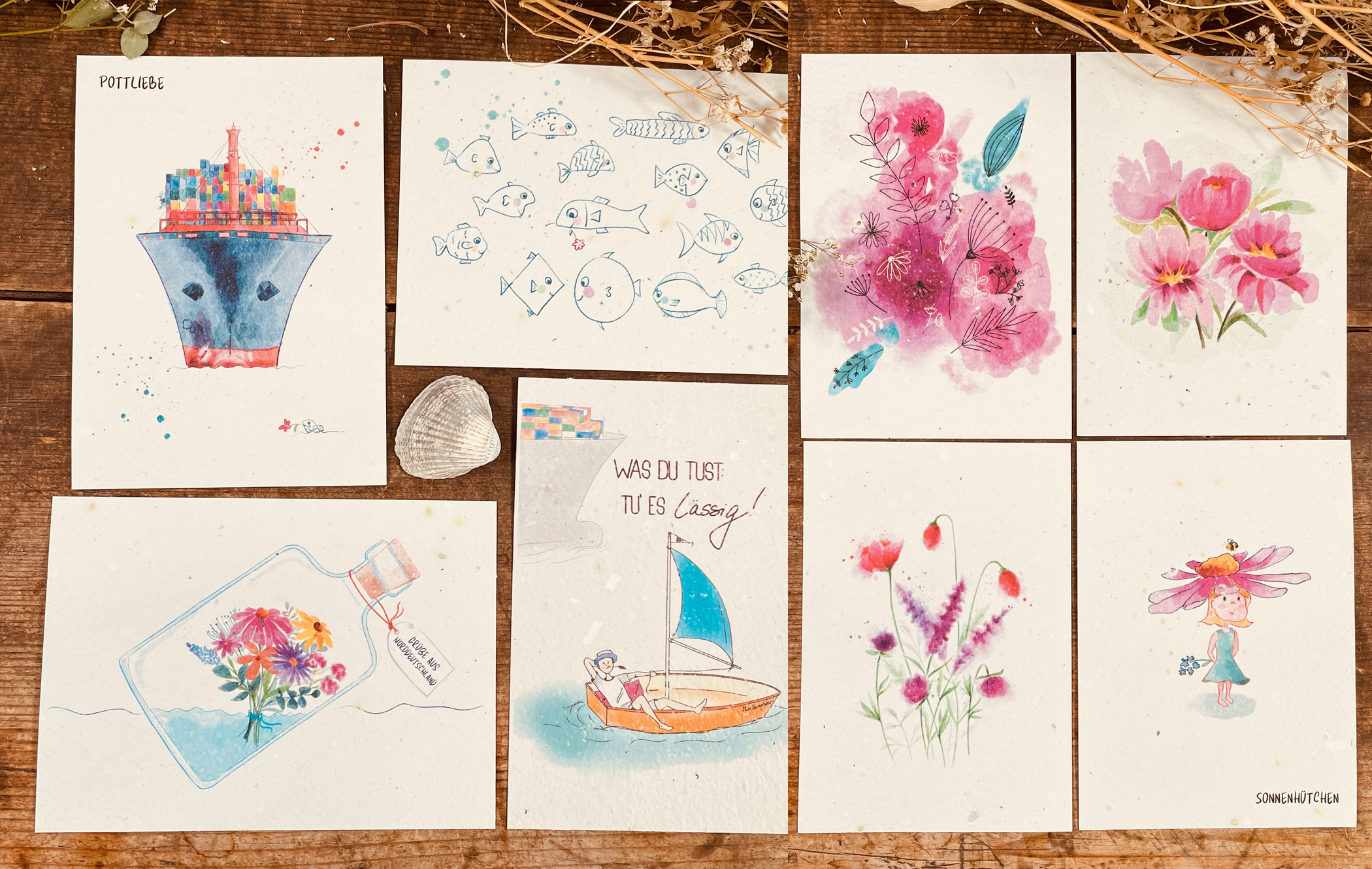 Die Designs und der Druck stammen dabei natürlich auch aus eigener Hand. Und wenn die Karte nicht mehr gebraucht wird, kann sie einfach eingepflanzt werden, wachsen und noch weiter erfreuen!